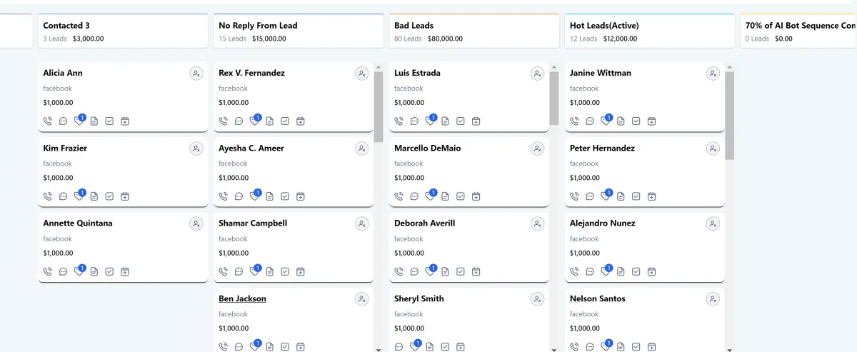 Our drag and drop style lead stage pipeline provides a beautiful visual presentation of your leads' stage relative to your funnel and conversion process. Customize your pipeline with whatever stages are relevant to you and have all of your leads information neatly organized in each lead card.