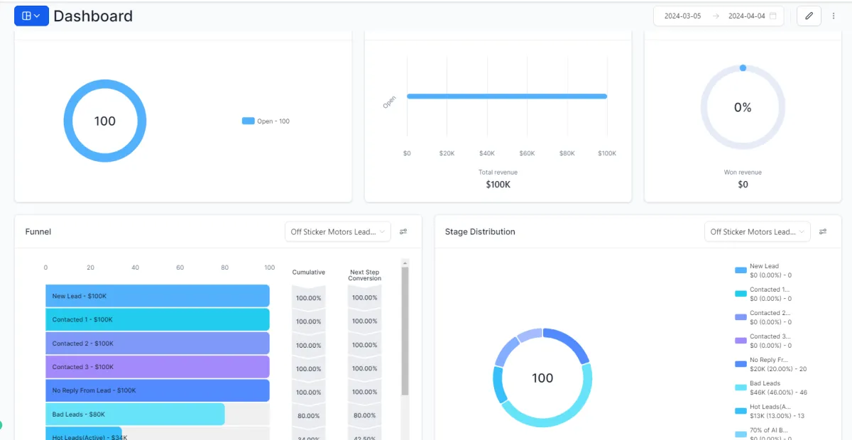 Our live data CRM dashboard gives you a beautifully displayed quick snapshot of all the numbers relevant to your business, ranging from the performance of your ads to the stages of your pipeline and the value of the sum of all your leads at that stage. Customize the dashboard to present with all the data you want to see on a daily basis.